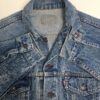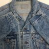 Vintage Levis denim trucker jacket. This 1980s Levis denim 70507 trucker jacket features two chest pockets with button closures, two side pockets, a button opening and a red Levis tab on the chest pocket. Made in the USA from a heavyweight cotton.