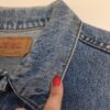 Vintage Levis denim trucker jacket, made in USA. This 80s Levis denim trucker jacket in pale blue features two chest pockets with button closures, two side pockets and the classic red Levis tab is featured on the left chest pocket. Made in the USA from a heavyweight cotton.