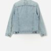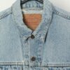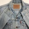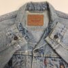 Vintage Levis distressed denim jacket in pale blue. This 90s Levis jacket features the classic Levis red tab, two chest pockets, two side pockets and branded button closures. Made in the Portugal from a heavyweight cotton.