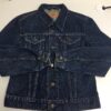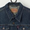 Vintage Levis for girls denim jacket in dark blue. This Y2K denim jacket in dark blue with classic yellow piping, features the classic Levis red tab embroidered onto one of the two chest pockets with branded bronze button closures, a branded bronze button opening, a pointed collar and branded bronze buttoned cuffs. Made from a heavyweight cotton.