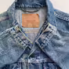 Vintage Levis trucker denim jacket. This 90s (1991) Levis denim jacket in light to mid blue features two chest pockets, two side pockets, buttoned cuffs, an adjustable button hem, a button closure and the classic red Levis tab is on the left chest pocket. Made from a heavyweight cotton.