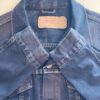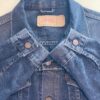 Vintage Levis women’s denim jacket in navy, overdyed. This 90s/Y2K denim jacket in faded navy features the classic Levis red tab, two chest pockets with button closures, a full length button closure, an adjustable hem and buttoned cuffs. Made from a mid-weight cotton.