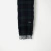 Vintage Lochmere cashmere blue and green plaid scarf. This navy and dark green plaid scarf features fringe detail and is made from a lightweight, soft cashmere.