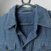 Vintage men’s denim jacket in mid-blue. This amazing jacket from the 1970s is in a lovely mid to dark blue. The jacket features contrasting orange stitching, two chest pockets and two hand pockets both with button closure. Made from a soft, mid-weight cotton.