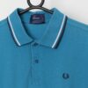 Vintage men’s Fred Perry polo shirt in blue and white. This Y2K blue Fred Perry polo features a navy and white trim, short sleeves and the Fred Perry logo is embroidered onto the left of the chest in navy. Made from a mid-weight cotton.