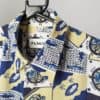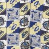 Vintage mens patterned shirt with fishing theme, including lovely illustrations of a lure, hat, fish and club badge. Unique beige and blue shirt is ideal for any budding fisherman or pro. Short sleeve with single buttoned chest pocket.