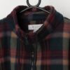 Vintage men’s plaid thick fleece jacket. This dark teal, green and purple super soft fleece features a plaid pattern, a quarter zip closure, two open side pockets, long sleeves and a draw string hem and neck. Made from a heavyweight, soft synthetic material.