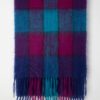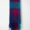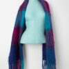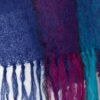 Vintage mohair scarf in purple, pink and blue. This beautifully handknitted long and cosy scarf in deep purple, bright pink and blue features a checked pattern, is fringed and is made from a heavyweight, soft mohair.