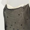 Vintage Moschino top with shiny mirrored polka dots. This Y2K top by Moschino features spaghetti straps and a black mesh over the cream material with mirrored polka dots. Made in Italy from a lightweight synthetic blend.