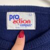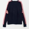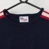 Vintage navy ski jumper, made in USA. This 80/90s navy blue ski jumper features red and white stripes on the sleeves, a round neck and long sleeves. Made in the USA from a mid-weight synthetic material.
