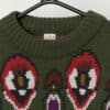 Vintage Oxbow dark green knitted sweater made in France, Pohono. This amazing 80/90s dark green Oxbow (style name Pohono) sweater features an amazing purple and red geometric design on the front and a purple and white striped pattern on the back and sleeves. This sweater also features the Oxbow label on the back left shoulder and a thick, stretchy crew neck. Made from a (super) heavyweight, soft wool and synthetic blend.