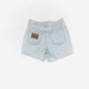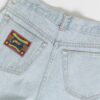 Vintage pale blue denim shorts. These 1980/90s pale blue shorts feature two front pockets, two back pockets, a zip fly and have a red and green patch on the back left pocket. Made from a mid-weight cotton.