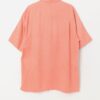 Vintage pink Hawaiian silk shirt with subtle leaf print. This Y2K salmon pink Hawaiian shirt features a subtle leaf print, one open chest pocket, an open collar, a wooden button closure and short sleeves. Made from a mid-weight silk.