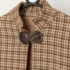 Vintage plaid cape with real shell clasp. This beautiful 60s brown and beige plaid cape features a collared neckline, a real shell clasp closure on the neck and is fully lined. Made from a mid-weight synthetic material.