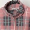 Vintage plaid fleece with drawstring waist in pink and green. This pink fleece features a grey, white and green plaid pattern, a drawstring waist, a full length zip closure, long sleeves and has two open side pockets. Made from a mid-weight, soft synthetic material.