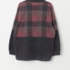Vintage plaid fleece with quarter snap button closure. This grey and red plaid fleece features a quarter snap button closure, a drawstring hem and long sleeves. Made in Italy from a mid-weight soft synthetic blend.