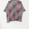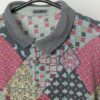 Vintage polo shirt with abstract design. This 90s red, green, grey and yellow polo features a geometrical and floral design, a button closure, short sleeves and is made from a textured lightweight cotton.