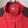 Vintage Puma fleece in red and dark grey. This 90s Puma fleece features a the Puma logo embroidered onto the left of the chest in blue. This fleece also features a full length zip, a draw string hem and two side pockets and a chest pocket with zip closures. Made from a soft mid-weight cotton with a polyester lining.