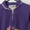Vintage purple collared sweatshirt with colourful floral embroidery. This 90s deep purple sweatshirt features a beautiful embroidered floral design, a collared neck, long sleeves and is made in from a mid-weight cotton blend.