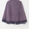 Vintage purple mohair cape jacket by Andrew Stewart. This beautifully made 1970s purple cape features a collared neckline, two hand openings, a snap button opening on the neck and fringe detail along the hem. Woven in Scotland from a soft, mid-weight wool and mohair blend.