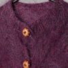 Vintage purple mohair cardigan with hand painted wooden buttons. Lovely soft and warm fabric with amazing feature buttons that add a real bohemian feel to this wonderful hand knitted cardi Our recommended size: Small womens (Please check specific measurements below) Label Says: No label Condition: Very good Material: No care label. Confident it’s a wool / mohair blend. We’ve provided garment measurements below and suggest you compare these to a similar garment you own to determine a good fit. Measurements are taken flat and doubled for waist and hip.