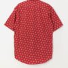 Vintage red abstract shirt with chest pocket. This red shirt features an abstract floral/star pattern, one chest pocket with a button closure, short sleeves and is made from a mid-weight cotton.