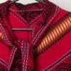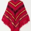 Vintage red woven poncho with scarf. This beautiful cape features a bright geometrical pattern, a high neck and a matching sewn on scarf for extra comfort! Made from a mid-weight synthetic material.