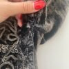 Vintage ropework velvet jacket in silver grey. This silver grey 80s velvet jacket features a ropework design on the front, on the round neck, the button opening and cuffs. This jacket also features a tie closure on the back, long sleeves and is made from a mid-weight synthetic material.