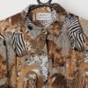 Vintage safari animal print blouse. This 80s/90s blouse features a rhino, zebra, giraffe and lion print, a button closure, short sleeves and was handmade from a lightweight cotton in Zuzuland (eastern South Africa).