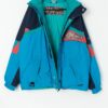 Vintage Sergio Tacchini ski jacket. This 90s Sergio Tacchini ski jacket in orange, black and various shades of blue features a hidden chest pocket with a zip closure and two side pockets with a fabric and zip closure. This jacket also features a full length zip and a fabric closure, a hood that can be hidden in the neck line and both the hem and neck can be altered with draw strings for the best individual fit.