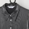 Vintage shiny silver blouse. This Y2K shiny silver blouse features a pointed collar, a full length iridescent button closure and buttoned cuffs. Made from a lightweight synthetic blend.