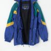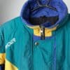 Vintage Spyder men’s ski jacket in blue, green and yellow. The jacket features two hand pockets with zip closure, zips underneath both armpits (to allow you to adjust the air flow!) and a drawstring hem. This jacket will be perfect for the cold months with its Thinsulate polyester insulation. Made from a soft, light to mid-weight material. Made in Poland.