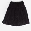 Vintage striped ruffle skirt in black, pink and green. This pretty 80s black skirt features pink and green stripes, a side zip and button closure and is made in England from a synthetic blend.
