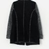 Vintage suede jacket with knitted sleeves. This gorgeous lined Y2K jacket features a black button closure, a collared neckline, two open pockets above the hem, an inside pocket with a zip closure and grey and black knitted sleeves. A fabulous, standout jacket! Made from a heavyweight real leather with a polyester lining.