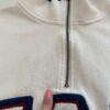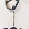 Vintage Tasmanian Devil Looney Tunes quarter zip sweater. This 90s white and navy sweater by Warner Bros Studio Store, features a large ‘Taz’ spell out with the Tasmanian Devil underneath. This sweater also features long sleeves, a quarter zip and is made from a heavyweight cotton blend.