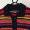 Vintage The Sweater Shop cardigan with multicoloured stripes. This 90s/Y2K beautiful multicoloured cardigan by The Sweater Shop features a striped pattern a collared neckline and a full length button closure. Made from a soft, heavy weight synthetic material.