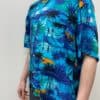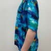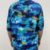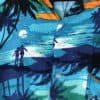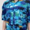 Vintage tropical mens shirt with sunset moonlit beach scene. Aquamarine, purple, orange, blue and green create a really bright summery shirt.