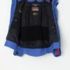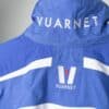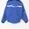Vintage Vuarnet ski jacket deep blue with white, green, red, white and black. This ski jacket features two hidden chest pockets with zip closures and two side pockets with a fabric and zip closures. It has been modified with patches of fabric which is common for ski instructors to stick their badges onto. Made from a heavyweight polyamide with polyester padding.