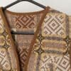 Vintage Welsh wool vest in mustard with buckle closure. This stunning 1960/70s waistcoat in mustard yellow, brown and black features a gold buckle closure on the waist and two open pockets above the hem. Made from a heavyweight, slightly coarse, pure new wool.