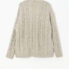 Vintage wool and alpaca cable knit cardigan. This pale grey cardigan features a long v-neck, a faux leather brown button closure and a beautiful cable knit pattern. Circa 1990. Made in Italy from a heavyweight soft wool, alpaca and acrylic blend.