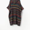 Vintage wool blend striped hooded poncho / cape. This bright and beautiful cape features a large hood, a unique single button neck closure and short sleeves. Circa 1990. Made from a heavyweight, soft wool, acrylic and mohair blend.