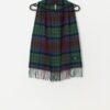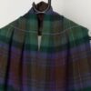 Vintage wool plaid scarf tabard in purple and green. This amazing purple, green and brown plaid scarf features a fringed hem and a faux leather button closure. Made in Scotland from a soft, lightweight lambswool.