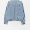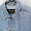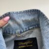 Vintage Wrangler denim jacket in pale blue. This 90s Wrangler denim jacket in pale blue features two chest pockets, two side pockets, buttoned cuffs, an adjustable button hem, a button closure and the Wrangler tab is on the left chest pocket. Made from a heavyweight cotton.