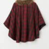 Leger & Oaks red plaid wool cape with fur trim. This amazing red, green and navy plaid cape features a real fur trim, is fully lined and has a gold button closure. Made from a mid-weight cotton blend, synthetic lining and fur trim.