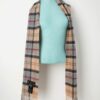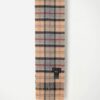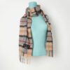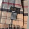 Barbour tartan merino and cashmere scarf, classic tartan scarf. This classic scarf by Barbour features a tan, grey and red tartan pattern, fringe detail and is made from a super soft merino wool and cashmere blend.