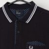 Men’s slim fit Fred Perry polo shirt in navy blue. This navy blue Fred Perry polo features short sleeves, a white trim, a polka dot pattern on the button closure and above the chest pocket. The Fred Perry logo is embroidered onto the left of the chest and it is made from a mid-weight soft cotton.