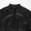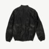 Womens vintage black leather bomber jacket with elasticated hem. This jacket features two open side pockets, an open chest pocket, a full length zip closure and is made from a heavyweight leather and synthetic lining.