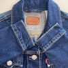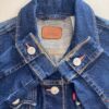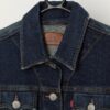 Women’s Levis sunset trucker jacket in indigo blue. This indigo blue sunset denim jacket by Levis features the Levis red tab on the left chest pocket, a full length button closure, two chest pockets with button closures, an adjustable hem and buttoned cuffs. Made from a mid-weight cotton.