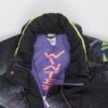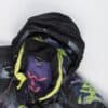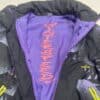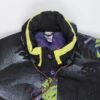 80s vintage puffer ski jacket with crazy snow pattern by Rodeo. This jacket features a large drawstring hood which can be tucked away into the neck, a full length zip and snap button closure and two side pockets with zip closures. Made from a heavyweight cotton and synthetic blend.