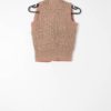 Womens vintage 1940s crocheted vest with edge to edge design (no closure). A wonderful sleeveless cardigan hand knitted/crocheted in peachy-beige with muted pink detailed edges. Personally handed to us by …
